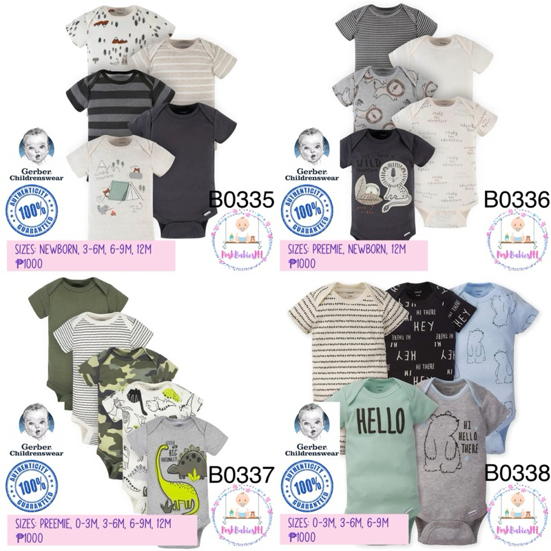 Original / Authentic Gerber Childrenswear 5 Pack Bodysuit Set Boys